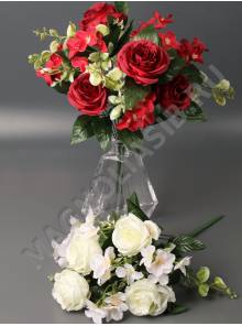 Букет пионовидных роз с гортензией 9гр 44см (бел кр гол борд сир роз)