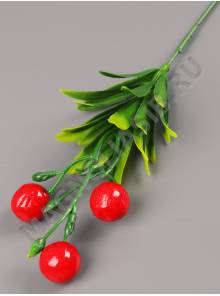 РАСПРОДАЖА Ветка с тремя крупными ягодками и пластм травкой 32см