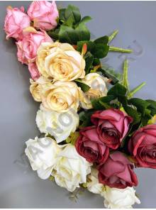 Куст крупных натуральных роз с пеной  6гр 45см (бел крем роз борд)